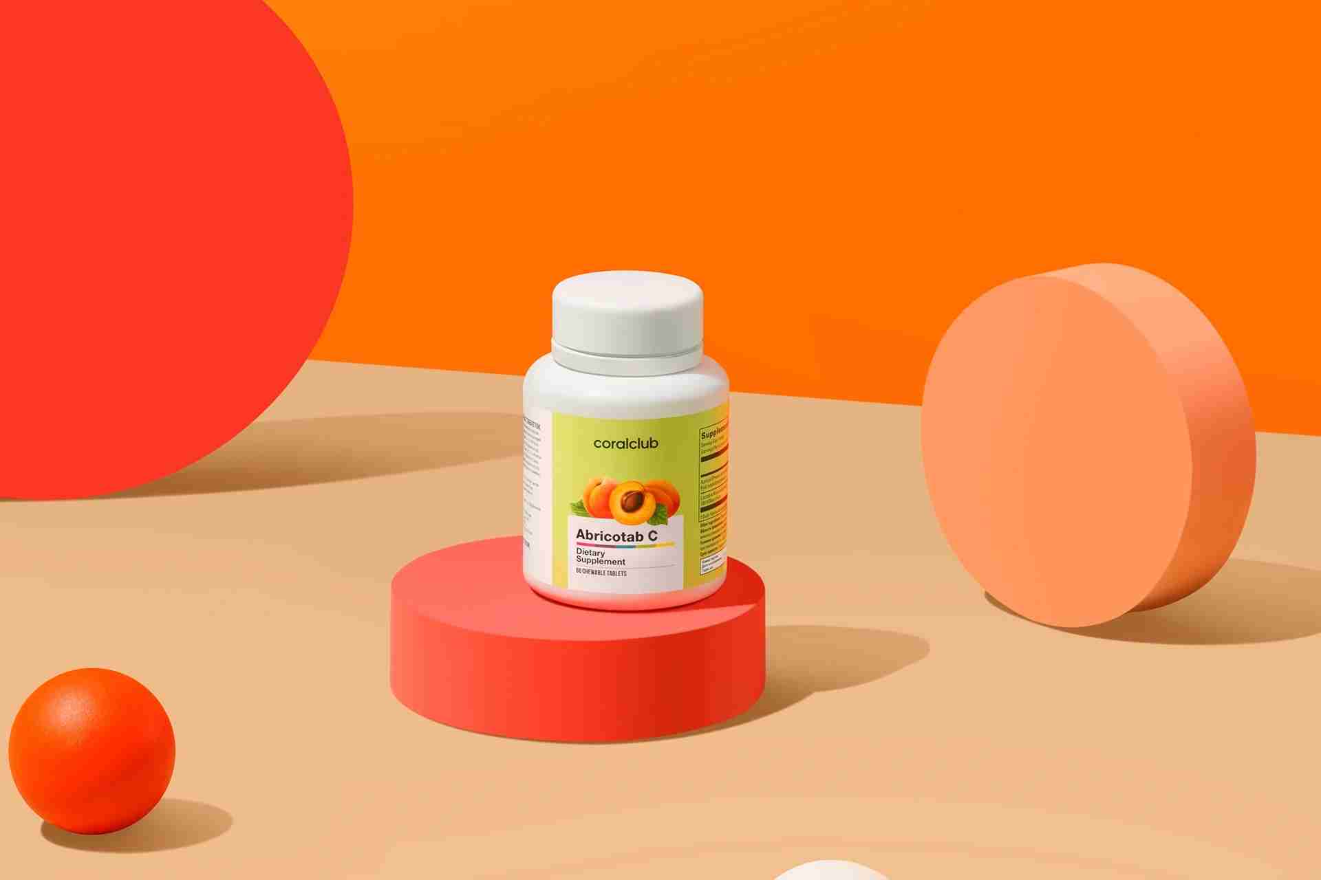 Ingredientes4 tabletas 6 tabletas Fruta de albaricoque liofilizada3,52 g 5,28 g Vitamina C400 mg (500% VRN*) 600 mg (750% VRN*) Otros ingredientes: estabilizante sales magnésicas de ácidos grasos * valores de referencia de nutrientes Peso neto: 60 g