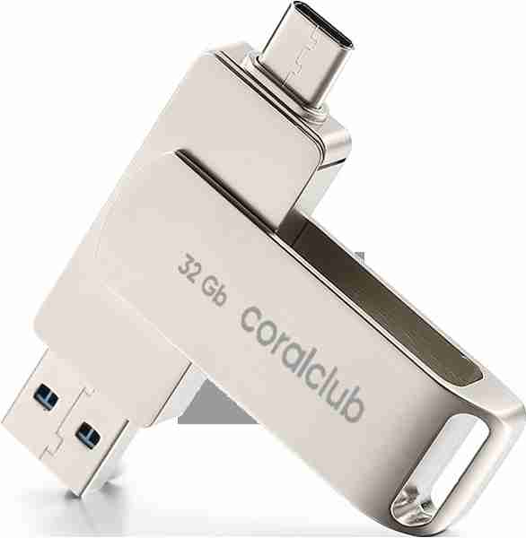 Memoria USB con la marca Coral Club. Interfaz usb 3.0 y tipo-c para guardar y compartir datos de manera cómoda.