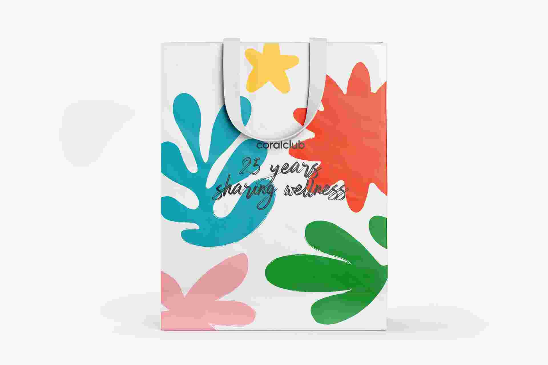 Bolsa de regalo dedicada al 25 aniversario de Coral Club. Ideal para agasajar a tus seres queridos con productos para la salud y la belleza.